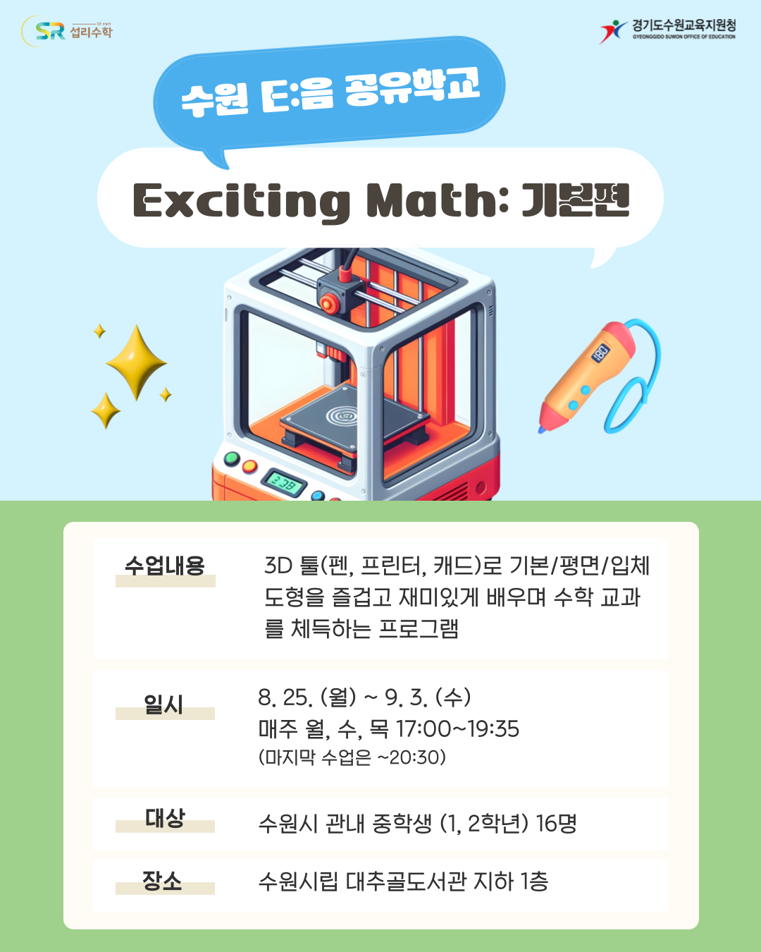 Exciting Math 수업을 수원 공유학교를 통해 개설하여 안내드립니다.