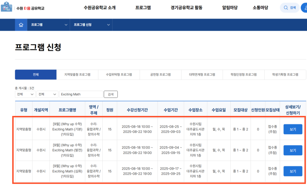 수원 공유학교 홈페이지 (https://buly.kr/DlJuOmz)에서 신청 가능하며